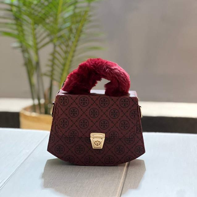 Upgrade your style with this luxury ladies handbag featuring a trendy monogram print and plush faux fur handle. Designed for both casual outings and formal occasions, this designer-inspired satchel combines elegance with comfort. The structured shape, secure gold lock closure, and premium finish make it a perfect choice for modern women who want a blend of fashion and functionality.